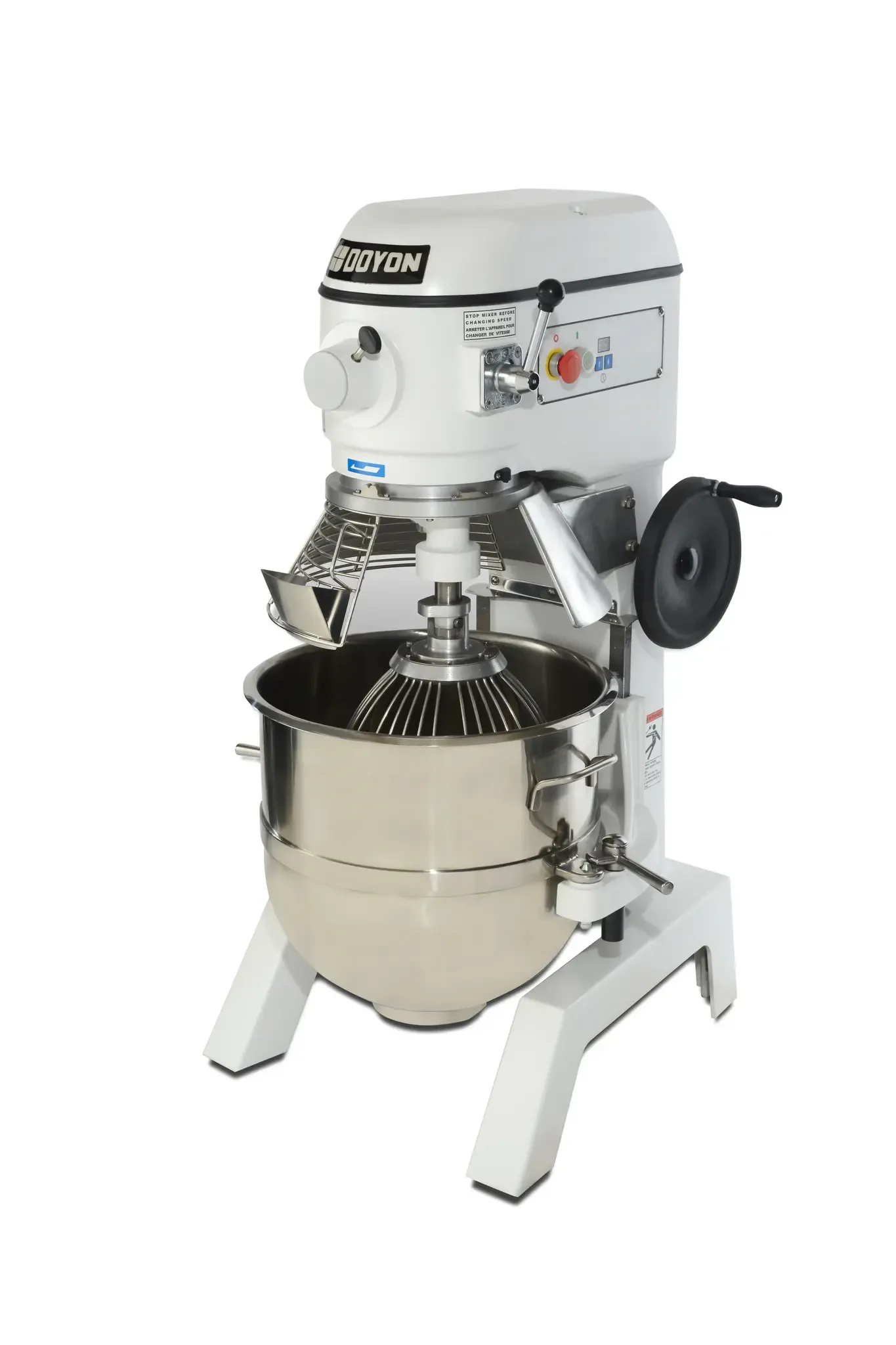 Unleash the magic of efficiency in every aspect with the Doyon-Nuvu SM402NA 40qt Planetary Mixer with Hub. Designed for commercial restaurant use, this floor model mixer is a game-changer in the kitchen. With a 40 quart capacity and three speeds, it can handle large batches of dough, batter, and more. The timer and emergency stop feature ensure precise mixing and added safety. The manual bowl lift makes it easy to load and unload ingredients, while the stainless steel bowl and safety guard with integrated feed chute provide durability and protection. The included dough hook, whip, and flat beater offer versatility for various recipes. The #12 driven hub allows for additional attachments, expanding the mixer's capabilities. Made with a cast iron frame and enamel coated metallic gray finish, this mixer is built to last. With its 1.5 HP motor and 208-240v/60/1-ph power supply, it delivers reliable performance. NSF and ETL sanitation certified, this Doyon-Nuvu mixer is a must-have for any commercial kitchen.