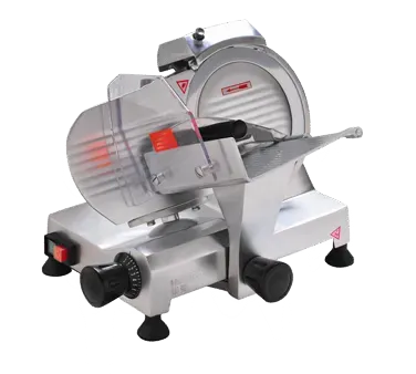 Streamline Your Culinary Workflow with the Eurodib USA HBS-195JS Meat Slicer. Designed for commercial restaurant use, this electric meat slicer is a game-changer in the kitchen. With its sleek design and powerful performance, it effortlessly slices through various meats, saving you time and effort. The HBS-195JS features a durable construction and a sharp blade that ensures precise and consistent cuts every time. Its user-friendly interface allows for easy operation, making it perfect for busy restaurant kitchens. Whether you need to slice deli meats, cheeses, or vegetables, this versatile machine can handle it all. Upgrade your restaurant's efficiency and productivity with the Eurodib USA HBS-195JS Meat Slicer.