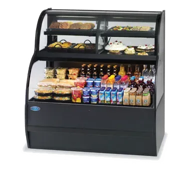 Effortless presentation of variety is made possible with the Federal Industries SSRC5952 Display Case. Designed specifically for commercial restaurant use, this specialty display convertible merchandiser offers the perfect solution for showcasing your products in style. With a refrigerated self-serve bottom and a convertible top, this display case provides the flexibility to meet your specific needs. The black exterior and tempered glass ends create an elegant and modern look, while the adjustable black wire shelves and glass rear sliding doors ensure easy access and visibility. The baffle system allows you to convert the display from non-refrigerated to refrigerated, making it ideal for displaying a wide range of items, from fresh produce to chilled beverages. Made in the USA and EPH Classified, this display case guarantees quality and reliability. Elevate your restaurant's presentation with the Federal Industries SSRC5952 Display Case.