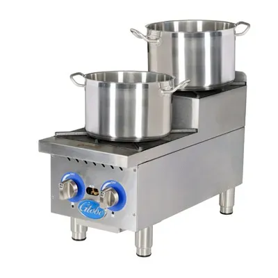 Elevate your culinary experience with the Globe GHPSU212G Hotplate. This gas countertop hotplate is designed to meet the demands of a commercial restaurant kitchen. With its powerful 30,000 BTU open burner, you can quickly and efficiently cook a variety of dishes. The cast-iron grates provide even heat distribution and are easy to clean. The removable catch tray helps to keep your workspace clean and organized. Made with stainless steel construction, this hotplate is durable and built to last in a busy kitchen environment. The adjustable stainless steel legs allow for easy customization to fit your countertop height. With a total of 60,000 BTU, this hotplate delivers the heat you need to cook your dishes to perfection. Trust Globe, a reputable vendor in the industry, and invest in the GHPSU212G Hotplate for your commercial restaurant.