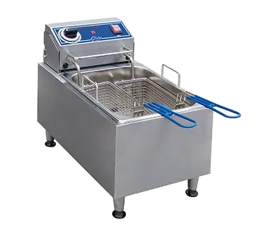 Discover kitchen perfection with the Globe PF10E Electric Countertop Fryer. This high-quality fryer is designed to meet the demands of a busy commercial restaurant kitchen. With a 10 lbs. oil capacity and a 70-375F thermostat, you can easily fry a variety of delicious foods to perfection. The manual reset feature ensures safety and peace of mind. The removable control box and element make cleaning a breeze, while the swing-up element allows for easy access to the fry pot. The fryer also comes with two nickel-plated fry baskets with insulated handles, allowing you to fry multiple items at once. The 3-1/2" stainless steel adjustable feet provide stability, and the durable stainless steel construction ensures long-lasting performance. With 1700 watts of power, this fryer is ready to handle any frying task. Trust Globe, a leading name in commercial kitchen equipment, and elevate your restaurant's frying capabilities with the PF10E Electric Countertop Fryer.