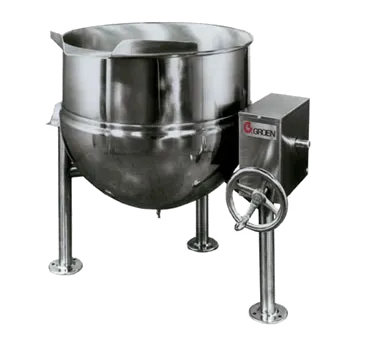 Stay competitive with innovative solutions using the Groen DL-80 Kettle, Direct Steam, Tilting. This high-quality commercial kitchen equipment is designed to meet the demands of a busy restaurant kitchen. With an 80-gallon capacity and a crank tilt feature, this tilting kettle allows for easy pouring and reduces the risk of spills. The 2/3 jacket and 316 stainless steel liner ensure even heat distribution and durability, while the tri-leg base provides stability during operation. Made in the USA with stainless steel construction and flanged feet, this kettle is built to last. With a maximum pressure of 25 PSI, it can handle the toughest cooking tasks. NSF certified, this Groen kettle meets the highest standards of safety and sanitation. Upgrade your restaurant kitchen with the Groen DL-80 Kettle, Direct Steam, Tilting and experience the convenience and efficiency it brings to your cooking processes.