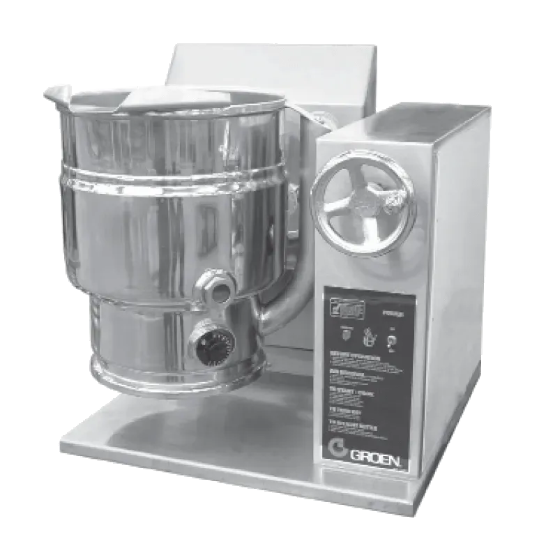 Equip for culinary success with the Groen TDHC-20A Gas Countertop Kettle. This 20-quart capacity kettle is designed to meet the demands of a busy commercial restaurant kitchen. Its 2/3 jacket and IPX6 water-rated electronic advanced controls ensure precise temperature control and efficient cooking. With a 1-minute to 10-hour timer and low and high preset intensities, you have complete control over your cooking process. The 304 stainless steel liner and stainless steel construction guarantee durability and easy cleaning. The crank tilt and support console on the right make it convenient to pour and serve. With a 50 PSI rating and 31000 BTU, this kettle delivers powerful performance even at high elevations. Made in the USA and NSF certified, the Groen TDHC-20A Gas Countertop Kettle is a reliable and efficient addition to any commercial kitchen.