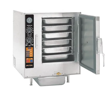 Stay ahead in the evolving world of cuisine with Groen's XS-208-8-1 Steamer. This countertop convection steamer is perfect for commercial restaurant use, offering convenience and efficiency. With a capacity of (6) 12" x 20" x 2-1/2" pans, it allows you to cook large quantities of food at once, saving you time and effort. The external heating element and fan in the cooking chamber ensure even heat distribution, resulting in perfectly cooked dishes every time. What sets this steamer apart is its boilerless and connectionless design, eliminating the need for a water or drain line. The 3-gallon reservoir provides ample water supply, while the stainless steel interior and exterior guarantee durability and easy cleaning. Made in the USA and ENERGY STAR certified, the Groen XS-208-8-1 Steamer combines quality, performance, and energy efficiency to meet the demands of any commercial kitchen.