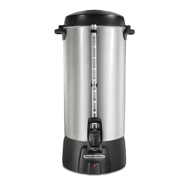 Enhance the heart of your restaurant with the Hamilton Beach 45100R Coffee Maker / Brewer Urn. This commercial-grade coffee urn is designed to meet the demands of a busy restaurant environment. With a 100 cup/3.9 gallon capacity, it can brew a cup a minute, ensuring that your customers never have to wait for their morning pick-me-up. The dual heaters and single wall insulation maintain the perfect temperature for serving, while the shielded coffee level indicator and ready to serve light make it easy to monitor and serve the coffee. The tall base allows for one-hand serving with 12 oz. cups, and the cool touch handles and locking lid ensure safety and convenience. Made with brushed aluminum, this coffee urn is not only durable but also adds a touch of elegance to your restaurant. Trust Hamilton Beach, a reputable vendor in the industry, to provide you with a reliable and efficient coffee maker that will enhance your customers' dining experience.