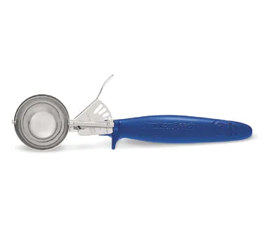 Achieve kitchen supremacy with the Hamilton Beach 80-16 Disher, Standard Round Bowl. This high-quality disher is a must-have tool for any commercial restaurant. With its stainless steel bowl and Microban-antimicrobial color-coded Ergo handle, this disher ensures both durability and hygiene. The blue handle not only adds a pop of color to your kitchen but also provides a comfortable grip for easy scooping. The disher comes with a pan rest, allowing you to keep your work area clean and organized. With a size 16, this disher is perfect for portioning out consistent servings of ice cream, mashed potatoes, or cookie dough. Plus, with a 2-year warranty, you can trust in the reliability of this Hamilton Beach disher. Upgrade your kitchen with the Hamilton Beach 80-16 Disher and experience the difference in efficiency and quality.