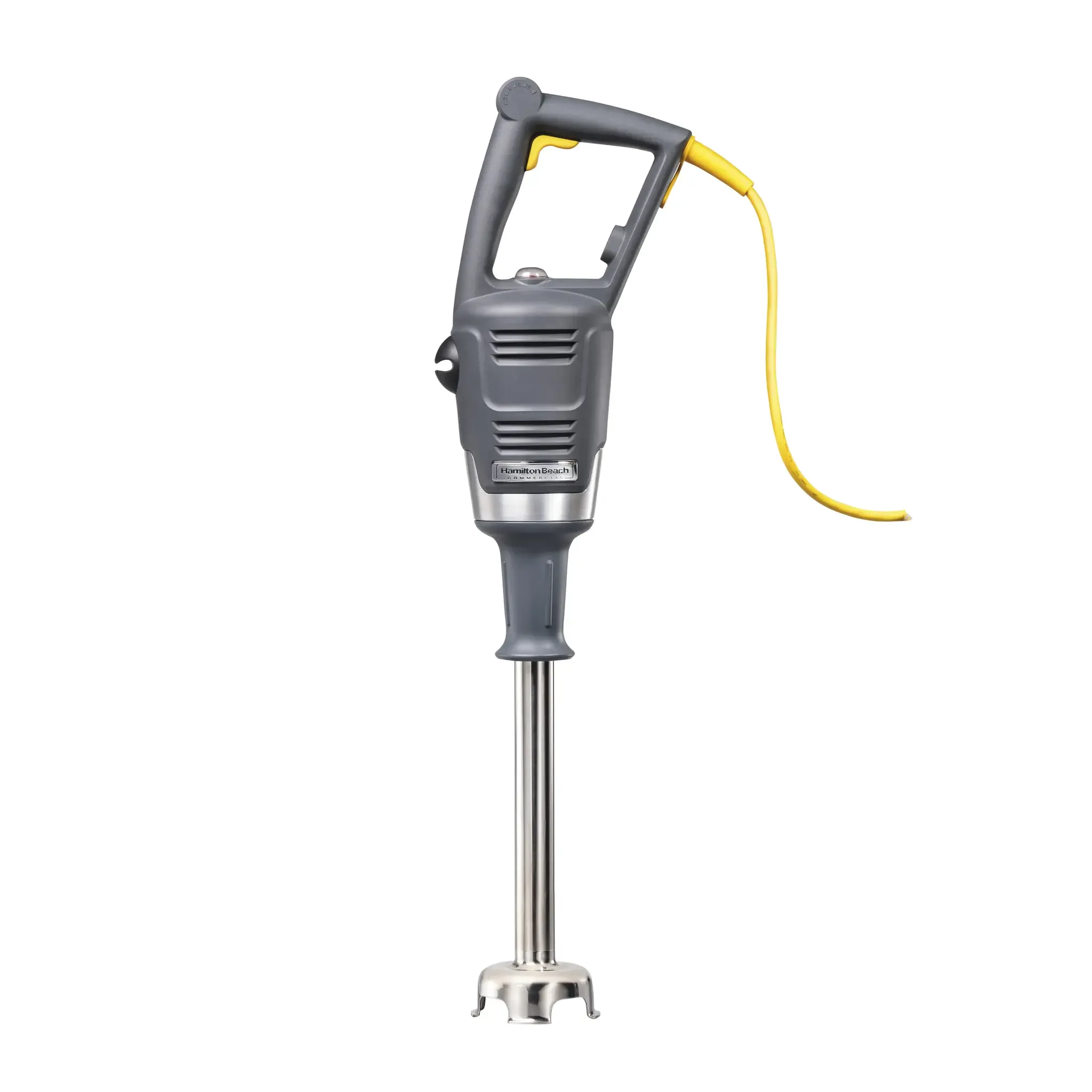 Equip your commercial kitchen with the Hamilton Beach HMI012 Immersion Blender. This heavy-duty 800W blender is designed to handle the demands of a busy restaurant kitchen. With its 12-inch variable speed blending arm, you can easily blend, puree, and emulsify a wide variety of ingredients. Whether you're making soups, sauces, or smoothies, this immersion blender delivers consistent results every time. The powerful motor ensures efficient blending, while the variable speed control allows you to achieve the perfect texture for your dishes. Its durable construction and ergonomic design make it easy to use and clean, saving you time and effort in the kitchen. Upgrade your blending capabilities with the Hamilton Beach HMI012 Immersion Blender.
