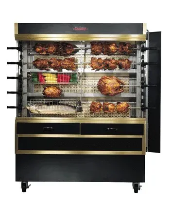 Ensure Consistent Results with Quality Tools using the Hickory Industries N/45WDE Oven, Rotisserie, Electric, Continuous Cook. This stainless steel, floor model oven is designed to meet the demands of commercial restaurant kitchens. With a capacity to hold 27-36 chickens, this 9 spit gas rotisserie oven is perfect for high-volume cooking. The dual cooking chambers allow for simultaneous cooking of different dishes, increasing efficiency and reducing cooking time. The sliding tempered glass doors provide easy access to the interior, while the manual control allows for precise temperature adjustments. The interior display lighting enhances visibility, making it easy to monitor the cooking process. Equipped with 5" castors, this oven can be easily moved for cleaning or repositioning. Whether you're roasting chicken, beef, or lamb, the Hickory Industries N/45WDE Oven ensures consistent, delicious results every time. Upgrade your restaurant kitchen with this reliable and efficient rotisserie oven.