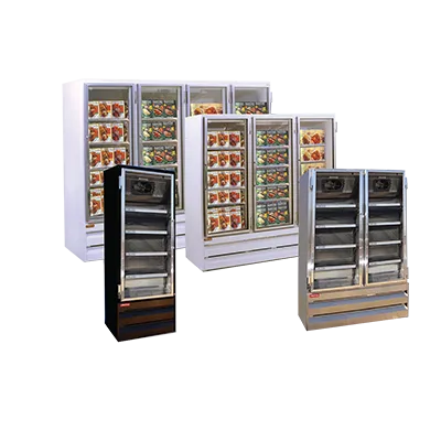 Cook with precision using the Howard-McCray GF88BM-S-FF Freezer Merchandiser. This four-section frozen foods merchandiser is designed to meet the needs of commercial restaurants. With an impressive 88 cu. ft. capacity, it provides ample space to store and display a wide variety of frozen foods. The stainless steel exterior and interior not only give it a sleek and professional look but also make it durable and easy to clean. The hinged glass doors allow for easy access and visibility, while the four epoxy-coated shelves per door provide organized storage. The bottom mount self-contained refrigeration system ensures efficient cooling, while the LED lights illuminate the products for maximum visibility. With electronic controls and automatic defrost, maintenance is a breeze. Powered by two 3/4 HP compressors, this freezer merchandiser delivers reliable performance. Trust Howard-McCray for quality and functionality in your commercial kitchen.