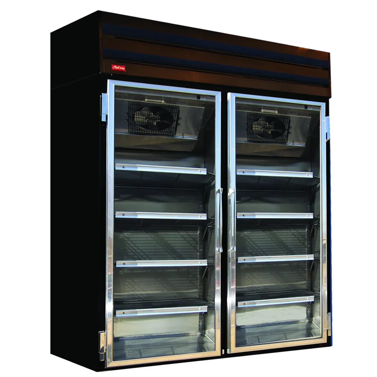 Invest in superior quality with the Howard-McCray GR48-B Refrigerator Merchandiser. This two-section refrigeration unit is designed specifically for commercial restaurant use, offering a spacious 48 cu. ft. capacity to store and display your products. The hinged glass doors provide easy access and visibility, while the four epoxy-coated shelves per door allow for organized storage. With its black exterior and interior, this refrigerator merchandiser adds a sleek and professional look to any establishment. The top mount self-contained refrigeration system ensures efficient cooling, while the LED lighting illuminates your products for maximum visibility. Equipped with 5" casters, this unit is easy to move and clean around. The 1/3 HP compressor and 115v/60/1-ph power supply ensure reliable performance. With its cULus and UL-Sanitation certifications, you can trust the Howard-McCray GR48-B to meet the highest standards of quality and safety. Upgrade your restaurant with this top-of-the-line refrigerator merchandiser.