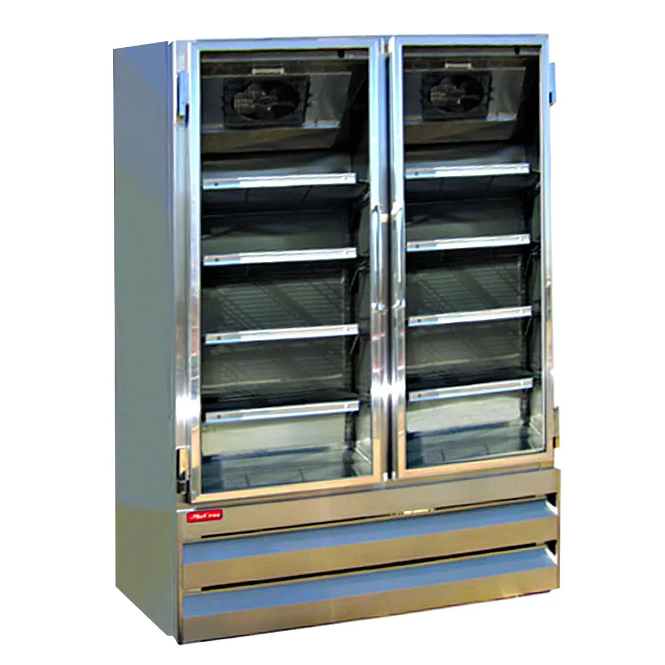 Unleash culinary creativity with the Howard-McCray GR48BM Refrigerator Merchandiser. This two-section refrigerator is designed to meet the needs of commercial restaurants, offering a spacious 48 cu. ft. capacity to store and display a wide range of food items. The hinged glass doors provide easy access and allow customers to see the products inside, enticing them to make a purchase. With four epoxy coated shelves per door, you have plenty of space to organize and showcase your culinary creations. The bottom mount self-contained refrigeration system ensures efficient cooling and easy maintenance. LED lighting illuminates the interior, making your products look even more appealing. The white exterior and interior give a clean and professional look to your establishment. Equipped with 5" casters, this refrigerator merchandiser can be easily moved and positioned wherever you need it. Trust Howard-McCray, a reputable vendor in the industry, to provide you with a reliable and high-quality refrigeration solution for your commercial restaurant.