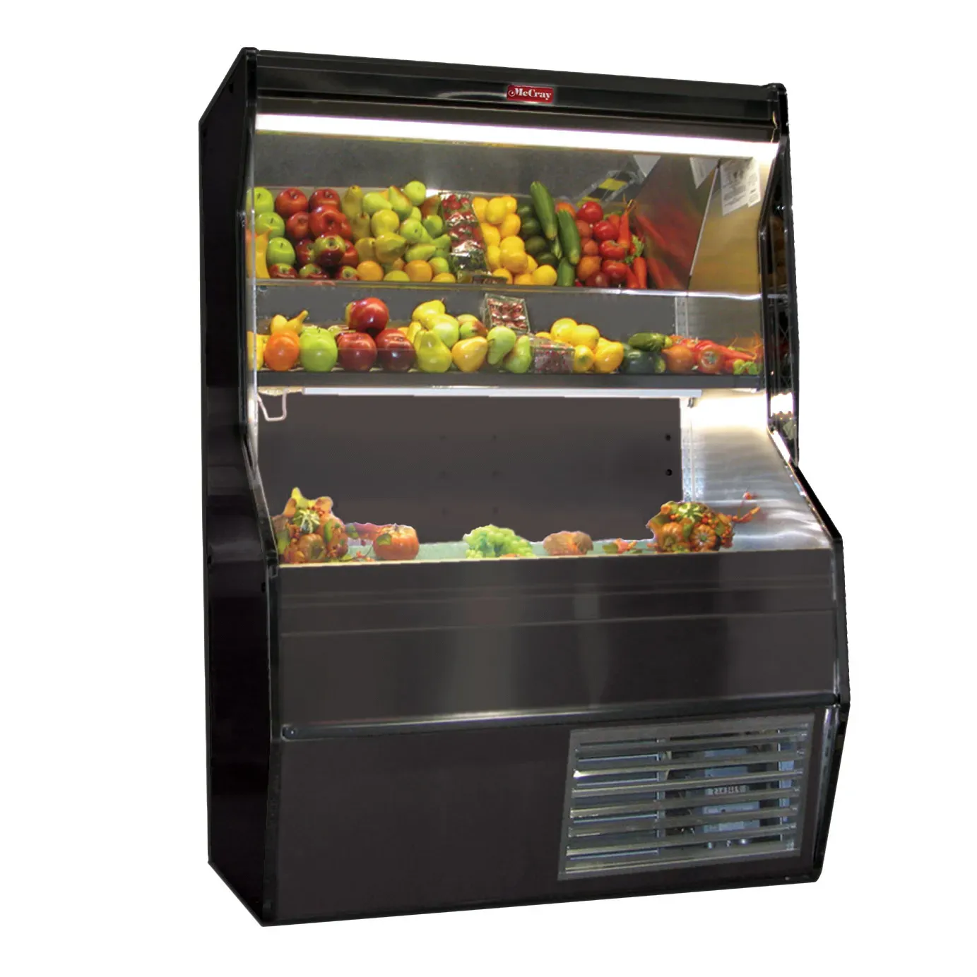 Kitchen innovation at its best, the Howard-McCray R-P32E-10S-B-LED Display Case is a must-have for any commercial restaurant. Designed specifically for produce, this open merchandiser boasts a spacious 122" width, allowing you to showcase a wide variety of fresh fruits and vegetables to entice your customers. The open front design, coupled with LED lighting, ensures maximum visibility and enhances the presentation of your produce. With a center shelf and a 15" product reflecting mirror, you can create stunning displays that are sure to catch the eye. The white exterior and interior give a clean and modern look, while the black interior and exterior option adds a touch of sophistication. This display case is designed for remote refrigeration, with the R448A expansion valve included. With its high BTU rating of 10,000 at +20 Evap Temp, this display case provides optimal cooling performance. Trust Howard-McCray, a reputable vendor in the industry, to deliver a top-quality product that meets all your commercial restaurant needs.