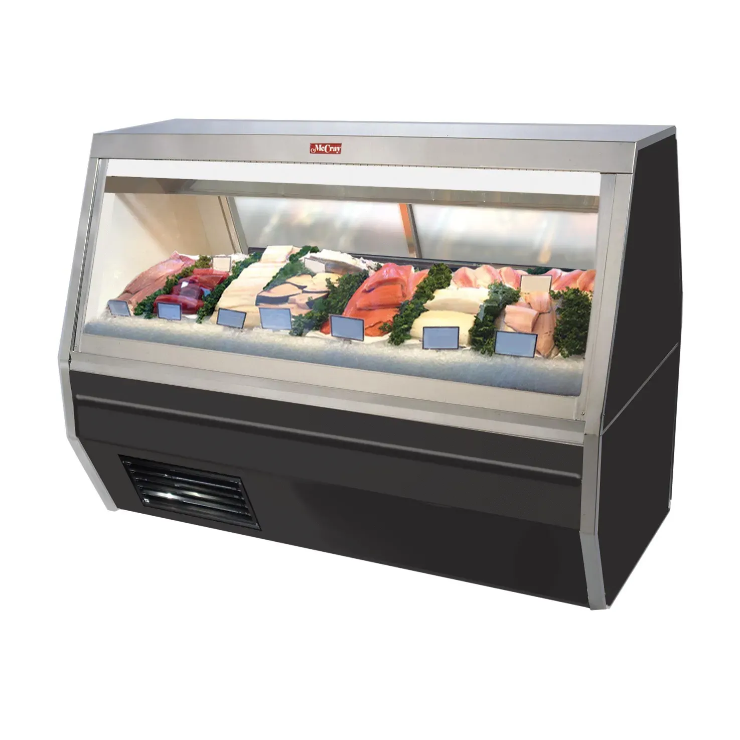 Experience kitchen innovation with the Howard-McCray SC-CFS35-6-BE-LED Display Case, designed specifically for deli seafood and poultry. This double-duty service case is a game-changer for commercial restaurants, offering self-contained refrigeration and a full-length gravity coil system on the upper level. The white stainless steel ice pan with a drain ensures easy cleaning and maintenance, while the stainless steel top adds a touch of elegance to your establishment. The black exterior and white interior create a sleek and modern look that will impress your customers. With a 1/4 HP motor and 12.0 amps, this display case provides efficient and reliable performance. Whether you're showcasing fresh fish or mouthwatering poultry, this Howard-McCray display case is the perfect addition to your restaurant. Elevate your food presentation and attract customers with this top-of-the-line display case.