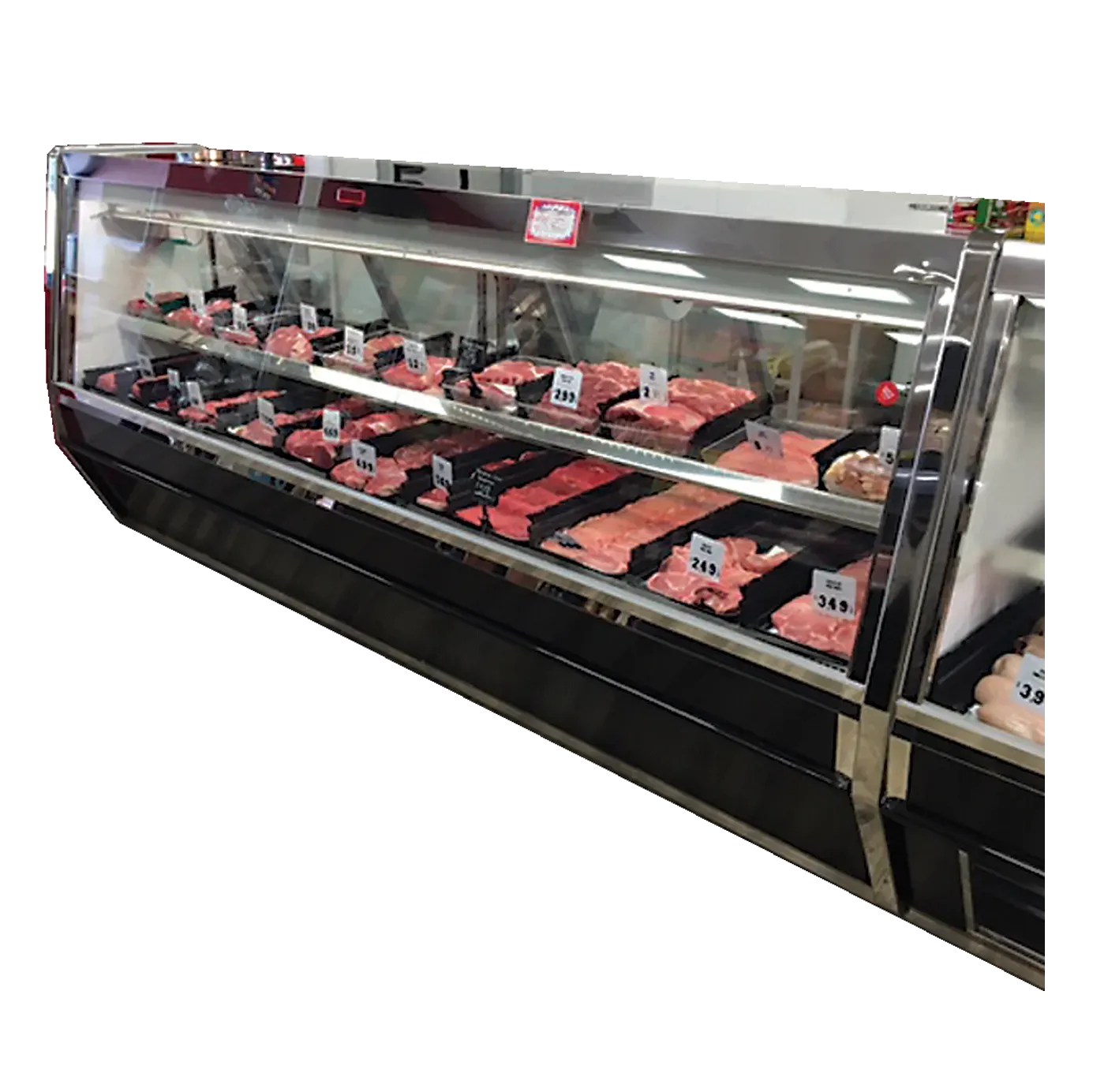 Unleash gastronomic brilliance with the Howard-McCray SC-CMS40E-10-BE-LED Display Case, Red Meat Deli. This 124-1/2"W single duty service case is designed to showcase your finest cuts of red meat in a commercial restaurant setting. With its endless design and self-contained refrigeration, this case ensures optimal temperature control to keep your meat fresh and appetizing. The full length gravity coil system and extra full length humidity coil at the main deck maintain the perfect environment for your meat, preserving its flavor and juiciness. The stainless steel top adds a touch of elegance, while the black exterior and white interior create a sleek and clean look. Powered by a 1/2 HP motor, this case is reliable and efficient. Whether you're a steakhouse or a butcher shop, the Howard-McCray SC-CMS40E-10-BE-LED is the ideal choice for displaying and storing your red meat with style and precision.