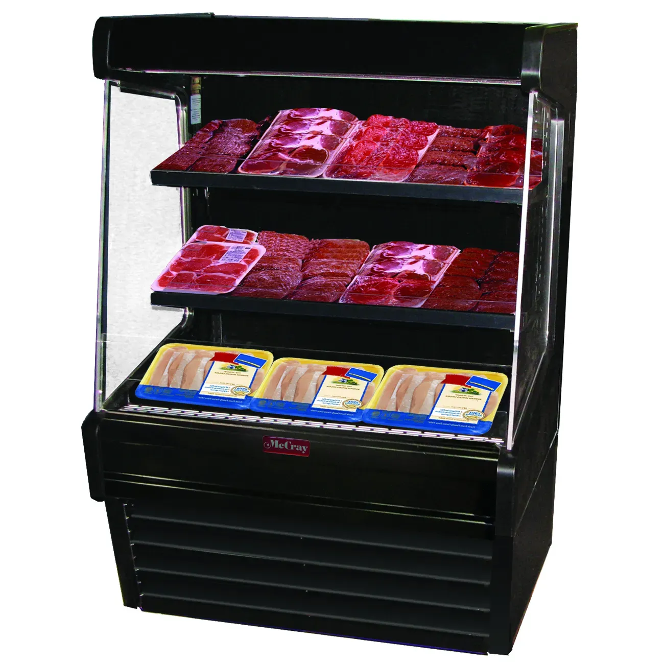 Achieve kitchen supremacy with the Howard-McCray SC-OM30E-6L-B-LED Merchandiser, Open Refrigerated Display. This self-contained refrigeration unit is designed to meet the needs of commercial restaurants, offering a spacious 75"W and 60"H display area. With two rows of slanted lighted shelves and a product stop, you can showcase your meat products in an enticing and organized manner. The LED lighting not only enhances visibility but also adds a touch of elegance to your display. The removable ends allow for a continuous line-up, ensuring a seamless presentation. The black exterior and interior give a sleek and professional look to your establishment. With a NEMA L14-20P plug and 3/4 HP motor, this merchandiser is powerful and efficient. Whether you're running a butcher shop, deli, or restaurant, the Howard-McCray SC-OM30E-6L-B-LED Merchandiser is the perfect addition to elevate your meat display and attract customers.