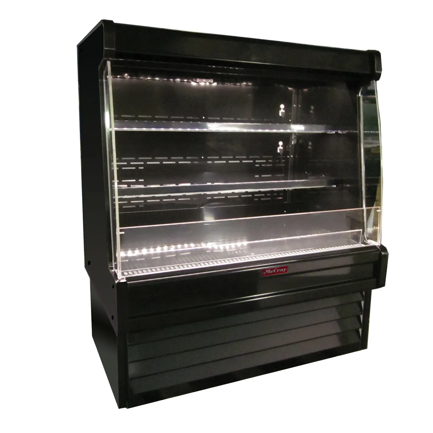 Introducing the Howard-McCray SC-OP35E-3L-B-LED Produce Open Merchandiser, designed to dominate the culinary world. This low-profile, endless design display case is perfect for commercial restaurant use. With its self-contained refrigeration system, your produce will stay fresh and enticing for customers. The unit features a lighted shelf and two levels of product display, allowing you to showcase a wide variety of fruits and vegetables. The full-length lighting at the top, along with the LED-lit interior and product reflecting mirror, ensures that your produce is beautifully illuminated, catching the eye of hungry customers. The black exterior and interior give this display case a sleek and modern look, while the 1" gray bumper adds durability and protection. With a 1/2 HP compressor and 115v/60/1-ph power supply, this display case is both powerful and energy-efficient. Don't miss out on the opportunity to elevate your restaurant's produce presentation with the Howard-McCray SC-OP35E-3L-B-LED Produce Open Merchandiser.