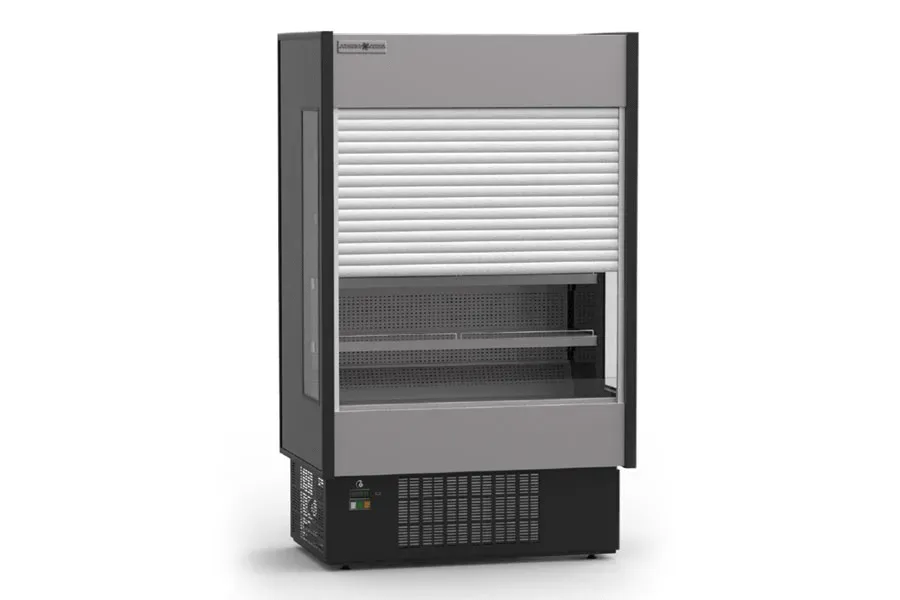 Revolutionize operations with adaptable choice through the MVP KGH-ES-80-S Merchandiser, Open Refrigerated Display. This versatile unit is designed to meet the needs of commercial restaurants, offering a spacious and efficient solution for displaying and storing perishable items. With its multiplexible design, this merchandiser allows for easy customization and organization, ensuring that your products are showcased in the most appealing way possible. The four adjustable shelves with product stops provide ample space for a variety of items, while the LED lighting in the canopy and under all shelves enhances visibility and highlights your offerings. The key-lockable night curtain and digital controller offer added convenience and security. Made with a PVC coated grey steel interior and a silver front panel, this merchandiser is not only durable but also visually appealing. Upgrade your restaurant's display capabilities with the MVP KGH-ES-80-S Merchandiser, Open Refrigerated Display.