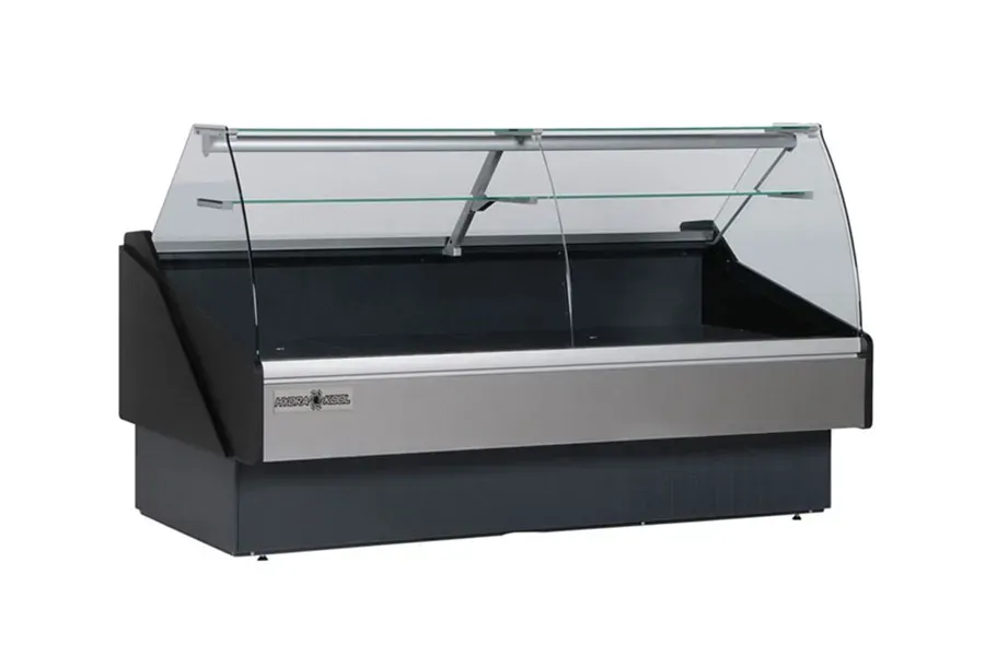 Elevate operations with intelligent choice through MVP's KPM-CG-80-R Display Case, Refrigerated Deli. This multiplexible service type case is designed to enhance efficiency in commercial restaurant settings. With a tilt-forward curved front tempered glass and anti-condensate system, it ensures optimal visibility and prevents fogging. The tempered glass sides and LED interior lighting further enhance product visibility, enticing customers with a clear view of your offerings. The digital controller allows for precise temperature control, ensuring food safety and quality. The rear removable tempered sliding glass doors and door storage compartment provide easy access and ample storage space. The PVC coated gray steel interior with a tempered non-refrigerated glass shelf offers durability and versatility. The adjustable feet and PVC coated silver steel front panel with a black steel kick plate add stability and style. Designed for remote refrigeration, this ETL-Sanitation and cETLus certified display case is a reliable and efficient choice for any commercial restaurant.