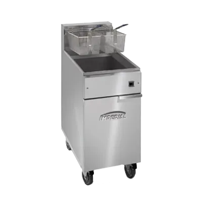 Streamline your restaurant cooking operations with the Imperial, IFS-50-E Electric Fryer. This floor model fryer is designed to handle the demands of a busy commercial kitchen. With a 50lb. fat capacity and immersed electrical elements, this fryer ensures efficient and consistent frying results. The snap action thermostat allows for precise temperature control, while the included wire mesh crumb screen and two nickel-plated baskets make cleaning and frying multiple items a breeze. The stainless steel construction of the front, door, sides, basket hanger, and frypot ensures durability and easy maintenance. The fryer also comes with 6" legs for stability and mobility. With a power output of 15.25 kW, this fryer is cETLus, CSA-Sanitation, and CE certified, guaranteeing its safety and reliability. Upgrade your kitchen with the Imperial, IFS-50-E Electric Fryer and experience enhanced efficiency and productivity.