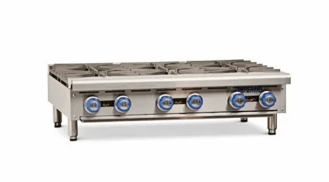 Take your kitchen to the next level with the Imperial IHPA-6-36 Hotplate. This gas countertop hotplate is designed to meet the demands of a commercial restaurant kitchen. With six open burners and cast iron grates, this hotplate provides exceptional heat distribution and durability. The removable crumb tray makes cleaning a breeze, ensuring a clean and sanitary cooking surface at all times. The stainless steel front, sides, and landing ledge not only add a sleek and professional look to your kitchen but also provide long-lasting durability. The adjustable feet allow for easy installation and leveling on any countertop. With a powerful 192,000 BTU output, this hotplate delivers the heat needed to cook a variety of dishes quickly and efficiently. It is CSA Flame, CSA Star, NSF, and CE certified, guaranteeing its safety and quality. Upgrade your kitchen with the Imperial IHPA-6-36 Hotplate and experience enhanced cooking performance and efficiency.