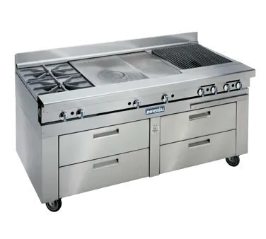 Invest in superior quality with the Imperial IHR-XX-RM-72 Equipment Stand, Refrigerated Base. This diamond series sizzle n chill system is designed to meet the demands of a busy commercial restaurant. With its 72" size, it offers ample space for your culinary creations. The unit features four drawers, each capable of holding eight pans, providing convenient storage for your ingredients. The digital thermostat allows for precise temperature control, ensuring your food stays fresh and at the optimal temperature. The front mount thermostat makes it easy to adjust settings as needed. The stainless steel construction of the front, drawer fronts, sides, guides, and bearings ensures durability and easy cleaning. The included drawer dividers help with organization, making it effortless to find what you need. With 6" legs, this refrigerated base is stable and easy to move for cleaning purposes. Invest in the Imperial IHR-XX-RM-72 Equipment Stand, Refrigerated Base for a reliable and efficient addition to your commercial kitchen.