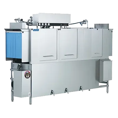 Boost productivity with innovative strategies using the Jackson WWS, AJ-100CS Dishwasher, Conveyor Type. This high-performance dishwasher is designed to meet the demands of a busy commercial restaurant. With adjustable conveyor speed and a high temperature sanitizing rinse, it can handle approximately 287 racks per hour, ensuring efficient and thorough cleaning. The two-tank design, with a wash and power rinse cycle, along with a 36" recirculating prewash, guarantees sparkling clean dishes every time. The stainless steel construction and steam coil tank heat ensure durability and reliability, even in the toughest kitchen environments. With a 25" clearance and 8" vent cowls/splash shield, this dishwasher accommodates large and tall items with ease. The vent fan control helps maintain a comfortable working environment. Trust the Jackson WWS, AJ-100CS Dishwasher, Conveyor Type to streamline your dishwashing process and keep your restaurant running smoothly.