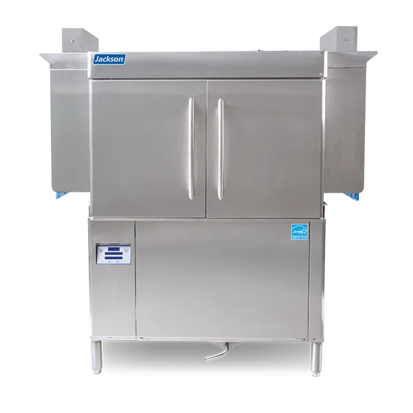 Elevate efficiency with cutting-edge solutions using the Jackson WWS, RACKSTAR 44CE Dishwasher, Conveyor Type. Designed specifically for commercial restaurant use, this high-performance dishwasher offers a single tank design with a capacity of approximately 223 racks per hour. With its fully automatic operation, including auto-fill and digital temperature readout, this dishwasher ensures optimal sanitization and convenience. The double-wall insulated doors on the front and EnergyGuard controls help to conserve energy and reduce operating costs. The Dual Rainbow Rinse feature allows you to choose between Econo or Turbo settings, providing flexibility based on your specific needs. The stainless steel construction, adjustable bullet feet, and splash shields ensure durability and easy maintenance. Equipped with a 3 HP pump and a 1/4 HP conveyor, this dishwasher delivers powerful performance. With its cETLus, NSF, and ENERGY STAR certifications, you can trust the reliability and efficiency of the Jackson WWS, RACKSTAR 44CE Dishwasher, Conveyor Type to meet the demands of your commercial restaurant.