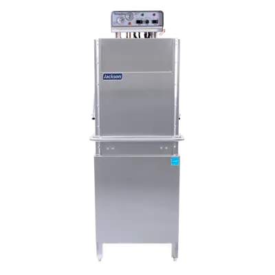 Elevate standards with modern solutions using the Jackson WWS, TEMPSTAR HH-E Dishwasher, Door Type. This high hood, high temperature electric tank heat dishwasher is designed to meet the demands of a busy commercial restaurant. With a built-in 70 rise booster, it ensures thorough sanitization and cleanliness of your dishes. The universal (straight-thru/corner) type allows for flexible installation options, making it suitable for any kitchen layout. This dishwasher can handle approximately 55 racks per hour, saving you time and increasing efficiency. Plus, it only uses 0.72 gallons of water per rack, making it an environmentally friendly choice. The Sani-Sure feature guarantees hygienic results, while the all stainless steel finish ensures durability and easy maintenance. With cETLus, NSF, and ENERGY STAR certifications, you can trust the quality and efficiency of this dishwasher. Upgrade your restaurant's dishwashing capabilities with the Jackson WWS, TEMPSTAR HH-E Dishwasher, Door Type.