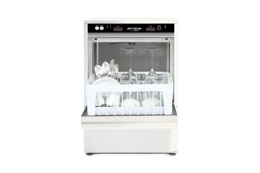 Upgrade workflow with innovative solutions through the MVP F-16DP Glasswasher. This undercounter, door-type glasswasher is designed to enhance efficiency and productivity in commercial restaurant settings. With its double-wall stainless steel construction, it ensures durability and longevity, even in high-demand environments. The integrated front control panel features analog temperature gauges, allowing for easy monitoring and precise control of the washing process. The glasswasher is fully automatic, capable of washing up to 24 racks per hour, with a maximum glass height of 10 inches. It also includes a built-in detergent and rinse additive pump, as well as an auto-drain pump for convenience. The 2.4 kW booster heater and 1/2 HP wash pump ensure optimal cleaning performance. With its ENERGY STAR certification, this glasswasher not only saves time and effort but also reduces energy consumption. Upgrade your restaurant's workflow with the MVP F-16DP Glasswasher.