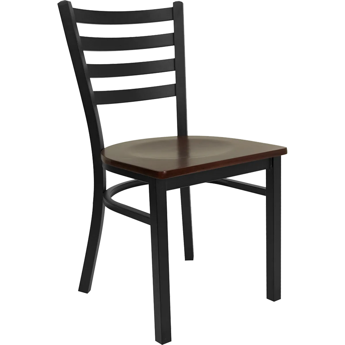 Craft culinary wonders with the JustChair Manufacturing M20118-BLK-VS Side Chair. This indoor chair is designed to enhance the dining experience in commercial restaurants. The chair features a ladder back design and a veneer wood seat, providing both comfort and style. The welded 18 gauge steel frame with a textured black powder coat finish ensures durability and longevity, making it perfect for high-traffic areas. The black nylon glides protect your floors from scratches and scuffs. With its sleek design and sturdy construction, this side chair is an excellent addition to any restaurant setting. Whether you're running a fine dining establishment or a casual eatery, this chair will impress your guests and withstand the demands of a busy restaurant. Upgrade your dining area with the JustChair Manufacturing M20118-BLK-VS Side Chair.