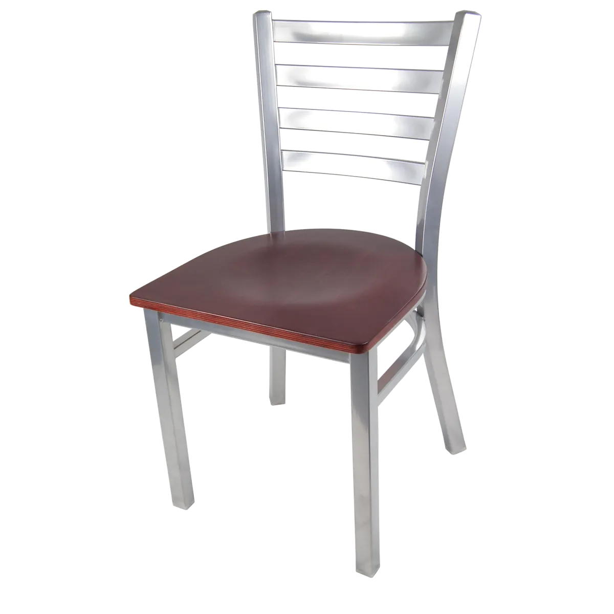 Take your kitchen to the next level with the JustChair Manufacturing M20118-SIL-VS Side Chair. This indoor chair is designed to enhance the ambiance of any commercial restaurant. The chair features a sleek ladder back design and a veneer wood seat, providing both style and comfort for your guests. The welded 18 gauge steel frame with a powder coat silver/chrome finish #48 ensures durability and longevity, even in high-traffic areas. The white nylon glides protect your floors from scratches and scuffs. Whether you're opening a new restaurant or giving your current establishment a makeover, the JustChair Manufacturing M20118-SIL-VS Side Chair is the perfect choice to elevate your dining experience.
