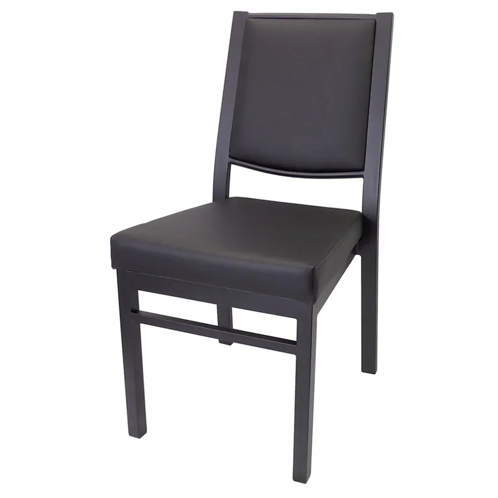 Introducing the JustChair Manufacturing, M81518LC-GR1 Chair, Side, Stacking, Indoor. Craft culinary wonders with this banquet collection stacking side chair, designed to elevate your restaurant's ambiance and comfort. The upholstered square padded back and 2-1/2" box seat provide exceptional support for your guests, ensuring a memorable dining experience. The welded steel frame with a textured black powder coat finish not only adds a touch of sophistication but also guarantees durability and longevity, even in high-traffic areas. The non-marring nylon glides protect your floors from scratches and scuffs, maintaining the pristine condition of your restaurant. With grade 1 upholstery, this chair exudes elegance and style, making it a perfect fit for upscale dining establishments. Whether you're hosting a large event or looking to maximize your seating capacity, the stacking feature allows for easy storage and efficient space utilization. Trust JustChair Manufacturing to deliver exceptional quality and design, enhancing your restaurant's aesthetic appeal while prioritizing your guests' comfort.