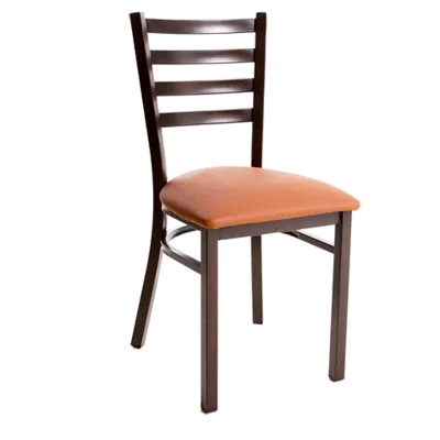 Equip your commercial kitchen with the JustChair Manufacturing WL20118-PS-COM Side Chair. This chair is designed to enhance the dining experience in your restaurant with its stylish ladder back design and comfortable upholstered 2-1/2" padded seat. The chair features a welded 18 gauge steel frame with a wood look finish, giving it a sleek and modern appearance that will complement any restaurant decor. The flat white nylon glides ensure smooth movement across the floor without causing any damage. With its commercial-grade construction and COM only option, this chair is perfect for busy restaurant environments. Upgrade your restaurant seating with the JustChair Manufacturing WL20118-PS-COM Side Chair and provide your customers with a comfortable and stylish dining experience.