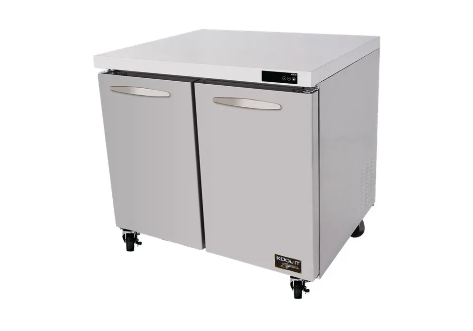 Maximize efficiency through smart solutions with the MVP KUCR-36-2 Undercounter Refrigerator. Designed specifically for commercial restaurant use, this two-section refrigerator offers a generous 9.5 cu. ft. capacity, providing ample space to store all your perishable ingredients. The stainless steel interior and exterior ensure durability and easy cleaning, while the four adjustable epoxy coated wire shelves allow for flexible storage options. With a temperature range of 33F to 40F, you can keep your food at the perfect temperature for maximum freshness. The automatic defrost feature saves you time and effort, while the easy grip door handle ensures quick and convenient access. The heavy-duty casters with two front brakes make it easy to move and secure the refrigerator wherever you need it. Trust in the MVP KUCR-36-2 to deliver reliable refrigeration performance in your commercial kitchen.