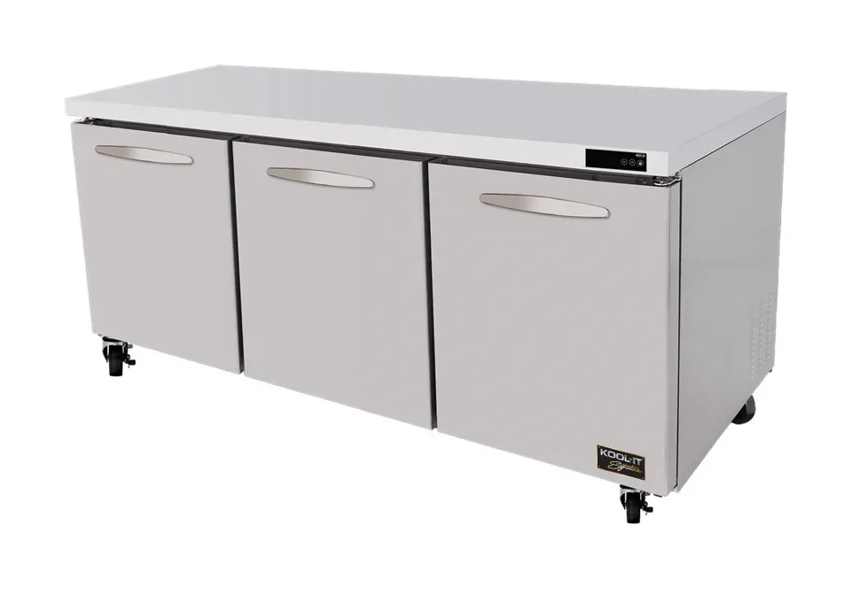 Enhance workflow with intelligent solution through MVP's KUCR-72-3 Undercounter Refrigerator. Designed specifically for commercial restaurant use, this three-section refrigerator offers a spacious 20.2 cu. ft. capacity, providing ample storage for your perishable ingredients. With three solid doors and six adjustable epoxy coated wire shelves, you can easily organize and access your items. The easy grip door handle ensures effortless opening and closing, while the stainless steel interior and exterior guarantee durability and easy cleaning. The temperature range of 33F to 40F keeps your food fresh and ready for use. Equipped with heavy-duty casters, including two front brakes, and a rear-mounted self-contained refrigeration system, this refrigerator is both mobile and efficient. The use of R290 refrigerant and a 1/4 HP compressor ensures energy efficiency and compliance with environmental regulations. Upgrade your restaurant's refrigeration system with MVP's KUCR-72-3 Undercounter Refrigerator.