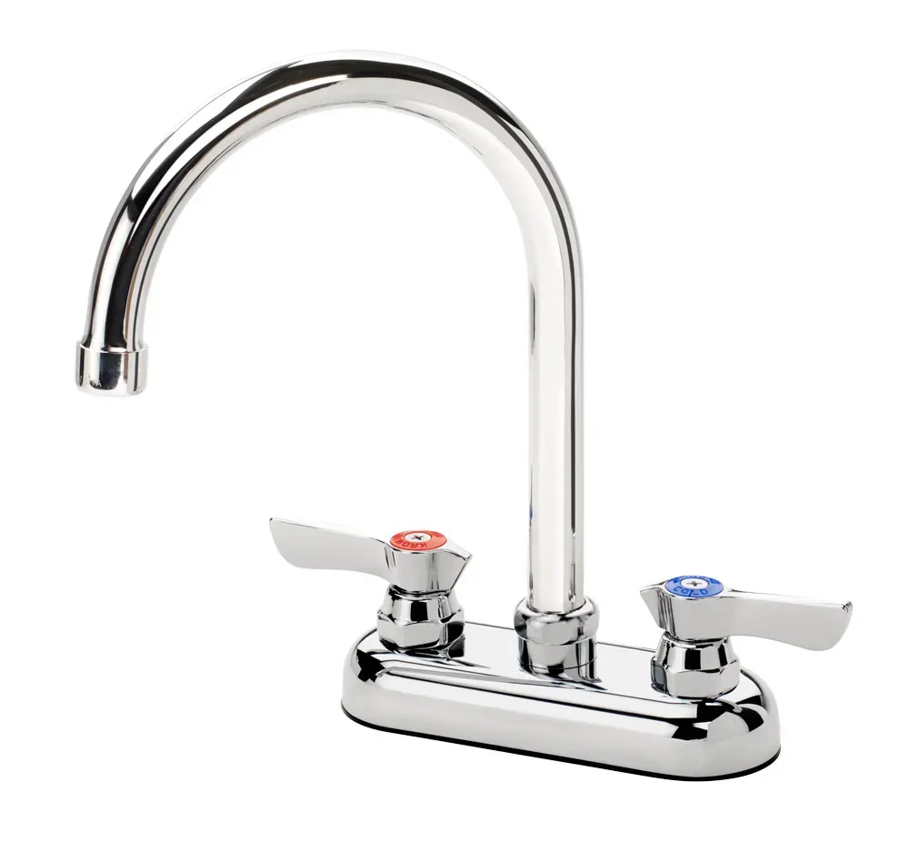 Revolutionize your cooking setup with the Krowne Metal, 11-401L, Gooseneck Faucet. This Silver Series 4" Center Deck Mount Faucet with 6" Gooseneck Spout is a must-have for any commercial restaurant. Its sleek design and durable construction make it the perfect addition to your kitchen.