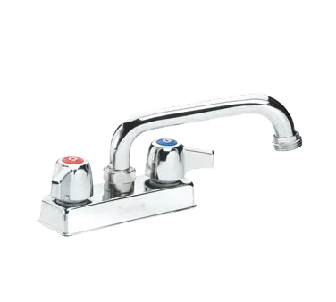 With its 4" center deck mount, this faucet is easy to install and provides a secure and stable connection. The 6" spout allows for ample reach, making it convenient for filling large pots and pans. The included hose adapter adds versatility, allowing you to easily connect a hose for various cleaning tasks. Its durable construction ensures long-lasting performance, even in the busiest of kitchens. Whether you're washing dishes, filling buckets, or cleaning countertops, the Krowne Metal, 11-450L, Standard Faucet is the perfect choice for achieving kitchen supremacy.