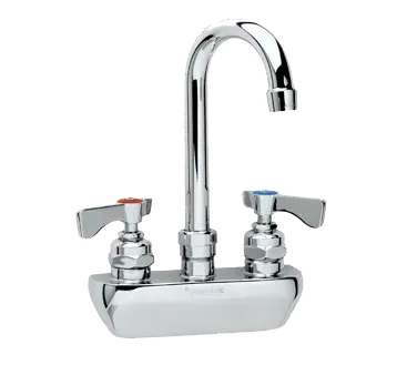 Introducing the Krowne Metal, 14-401L, Gooseneck Faucet, designed to deliver food perfection in any commercial restaurant setting. This Royal Series 4" Center Wall Mount Faucet with a 6" Gooseneck Spout is a must-have for any professional kitchen. With its sleek design and durable construction, this faucet is built to withstand the demands of a busy restaurant environment. The 4" center wall mount allows for easy installation and the 6" gooseneck spout provides ample clearance for filling large pots and pans. Whether you're washing dishes, filling containers, or rinsing produce, this gooseneck faucet is the perfect addition to your commercial kitchen. Upgrade your restaurant's functionality and efficiency with the Krowne Metal, 14-401L, Gooseneck Faucet.