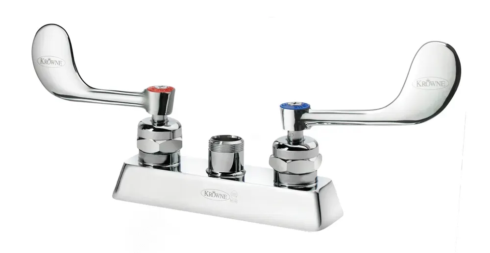 Introducing the Krowne Metal, 15-3XXL-W Faucet Body, designed to drive restaurant profitability. This high-quality faucet body from Krowne Metal is perfect for commercial restaurant use. With its ROYAL SERIES 4" center deck mount, this faucet body is built to withstand the demands of a busy kitchen. The vandal-resistant design ensures durability and longevity, making it an excellent investment for any restaurant owner. The 15-3XXL-W model comes with wrist blade handles, providing ease of use and precise control over water flow. Whether you're upgrading your existing faucets or outfitting a new restaurant, the Krowne Metal, 15-3XXL-W Faucet Body is a reliable choice that will enhance the efficiency and functionality of your kitchen. Trust Krowne Metal, a reputable vendor in the industry, to deliver top-notch products that meet the needs of your commercial restaurant.