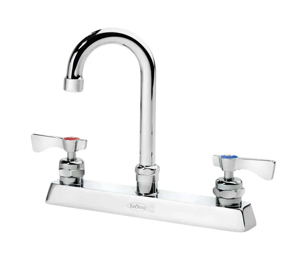 Elevate your cuisine with the Krowne Metal, 15-525L, Gooseneck Faucet. This high-quality faucet is designed to meet the demands of a commercial restaurant setting, ensuring durability and reliability. The Royal Series 8" center deck faucet features a 3-1/2" wide gooseneck spout, providing ample space for filling large pots and pans. Its sleek design adds a touch of elegance to any kitchen, while its functionality makes it a practical choice for busy chefs. With its easy installation and user-friendly operation, this gooseneck faucet is a must-have for any commercial kitchen. Upgrade your restaurant's kitchen with the Krowne Metal, 15-525L, Gooseneck Faucet and experience the convenience and efficiency it brings to your culinary operations.
