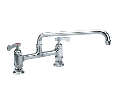 Featuring an 8" center raised deck mount, this faucet is perfect for commercial sinks and countertops. The 14" spout provides ample reach and flexibility, making it easy to fill large pots and pans or rinse off dishes. With its durable construction and reliable performance, this faucet ensures smooth operation and long-lasting use.
