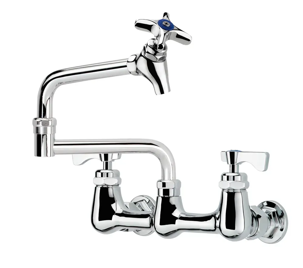 Experience kitchen innovation with the Krowne Metal, 16-251L, Standard Faucet. This Royal Series Wall Mount Pot Filler Faucet is designed to enhance efficiency and convenience in a commercial restaurant setting. With its 8" centers and 12" jointed spout, this faucet allows for easy filling of large pots and pans, reducing the time and effort required for food preparation. The durable construction ensures long-lasting performance, even in high-volume kitchens. Its wall mount design saves valuable counter space, making it ideal for busy kitchens. Whether you're filling pasta pots or stockpots, this pot filler faucet is a must-have for any commercial kitchen. Upgrade your restaurant's functionality and efficiency with the Krowne Metal, 16-251L, Standard Faucet.