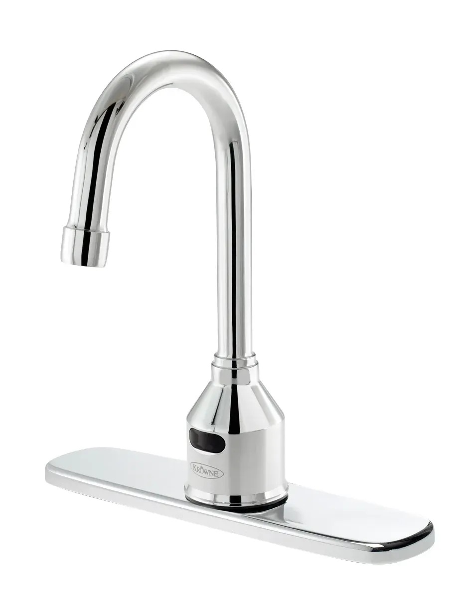 Empower your kitchen staff with the Krowne Metal, 16-649P8, Electronic Faucet. This high-quality faucet is designed to enhance efficiency and convenience in a commercial restaurant setting. With its single-hole deck mount sensor, battery operation, and 4-1/2" gooseneck, this faucet offers a seamless and hands-free experience for your kitchen staff. The 8" deck plate provides stability and easy installation, while the 1.50 GPM aerator ensures a steady flow of water for all your kitchen needs. Whether it's washing dishes, rinsing vegetables, or filling pots, this electronic faucet delivers reliable performance every time. Upgrade your kitchen with this innovative faucet and streamline your operations for maximum productivity.