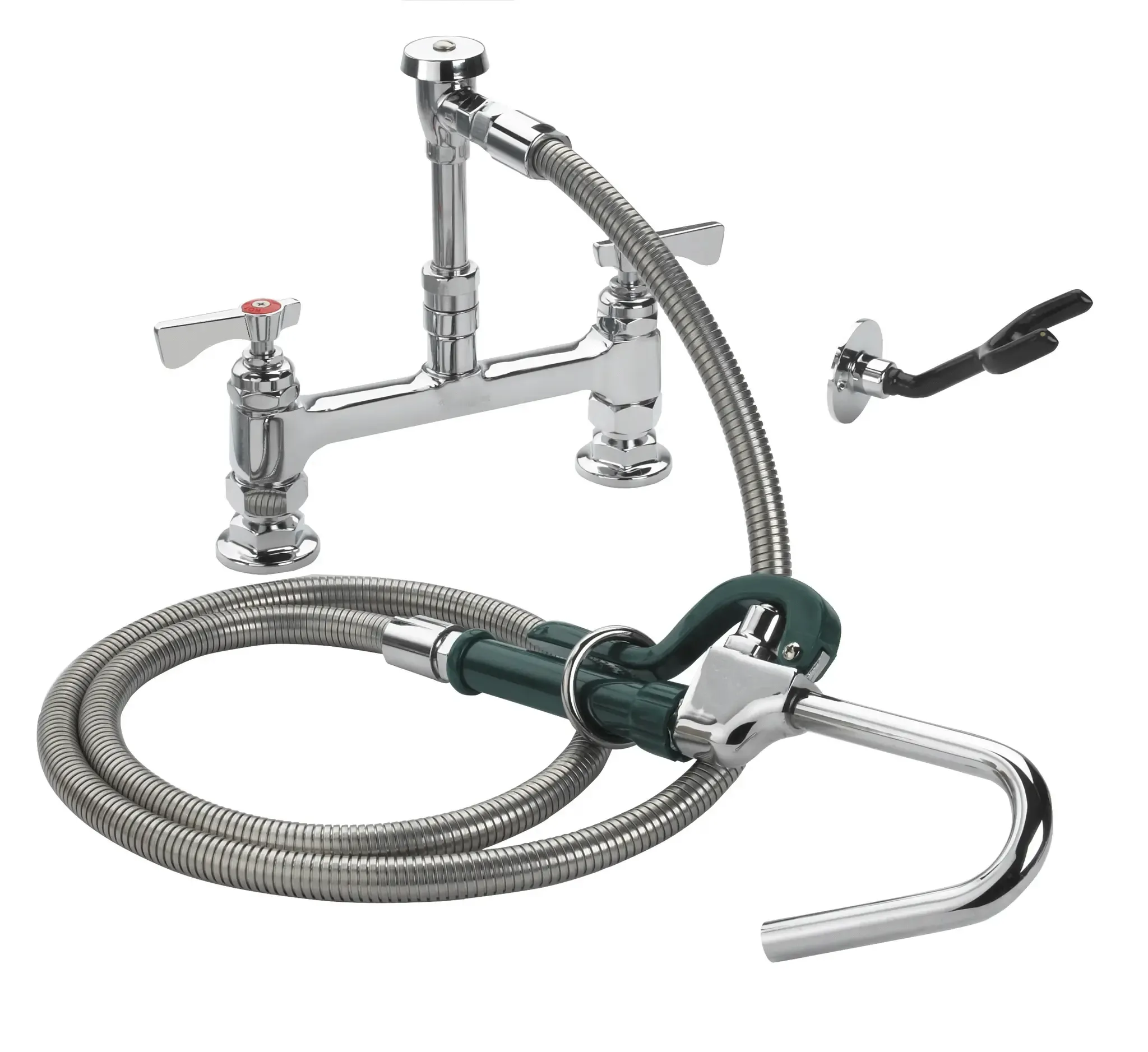 Introducing the Krowne Metal, 20-208L, Standard Faucet, designed to simplify restaurant operations. This Royal Series 8" Center Deck Mount Pot Filler is a must-have for any commercial kitchen. With its sleek design and durable construction, this faucet is built to withstand the demands of a busy restaurant environment. The 8" center deck mount allows for easy installation and provides a convenient water source for filling pots and pans. This standard faucet is sold individually, making it a cost-effective choice for restaurant owners. With the Krowne Metal, 20-208L, Standard Faucet, you can streamline your kitchen operations and ensure a smooth workflow. Invest in this reliable pot filler and experience the convenience and efficiency it brings to your commercial restaurant.
