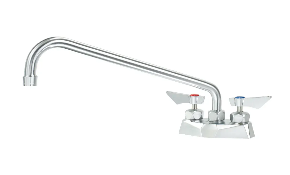 Unleash your kitchen's potential with the Krowne Metal, DX-314, Plumbing. This diamond series 4" center deck mount faucet with a 14" spout is a game-changer for any commercial restaurant. Designed by Krowne Metal, a trusted vendor in the plumbing industry, this faucet is built to withstand the demands of a busy kitchen. The faucet comes with mounting hardware, making installation a breeze. With its 4" center deck mount, it provides a stable and secure connection, ensuring no leaks or drips. The 14" spout offers ample reach, allowing for easy filling of large pots and pans. Whether you're running a bustling restaurant or a high-volume catering service, the Krowne Metal, DX-314, Plumbing is the perfect addition to your kitchen.