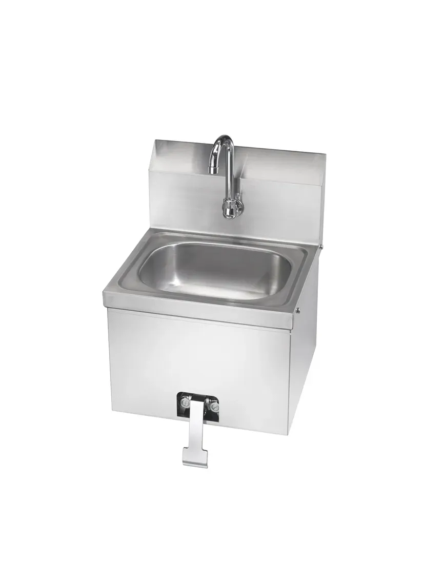 Boost your restaurant's performance with the Krowne Metal HS-15 Hand Sink. This 16" wide hand sink is designed specifically for commercial restaurant use, ensuring optimal functionality and efficiency. The knee valve feature allows for hands-free operation, promoting hygiene and preventing cross-contamination. With its compact size, this hand sink can easily fit into any kitchen layout without taking up valuable space. This hand sink is sold individually, making it convenient for restaurant owners to purchase exactly what they need. Whether you're running a small cafe or a bustling restaurant, this hand sink is a must-have for maintaining cleanliness and meeting health code requirements. Upgrade your restaurant's sanitation standards with the Krowne Metal HS-15 Hand Sink.