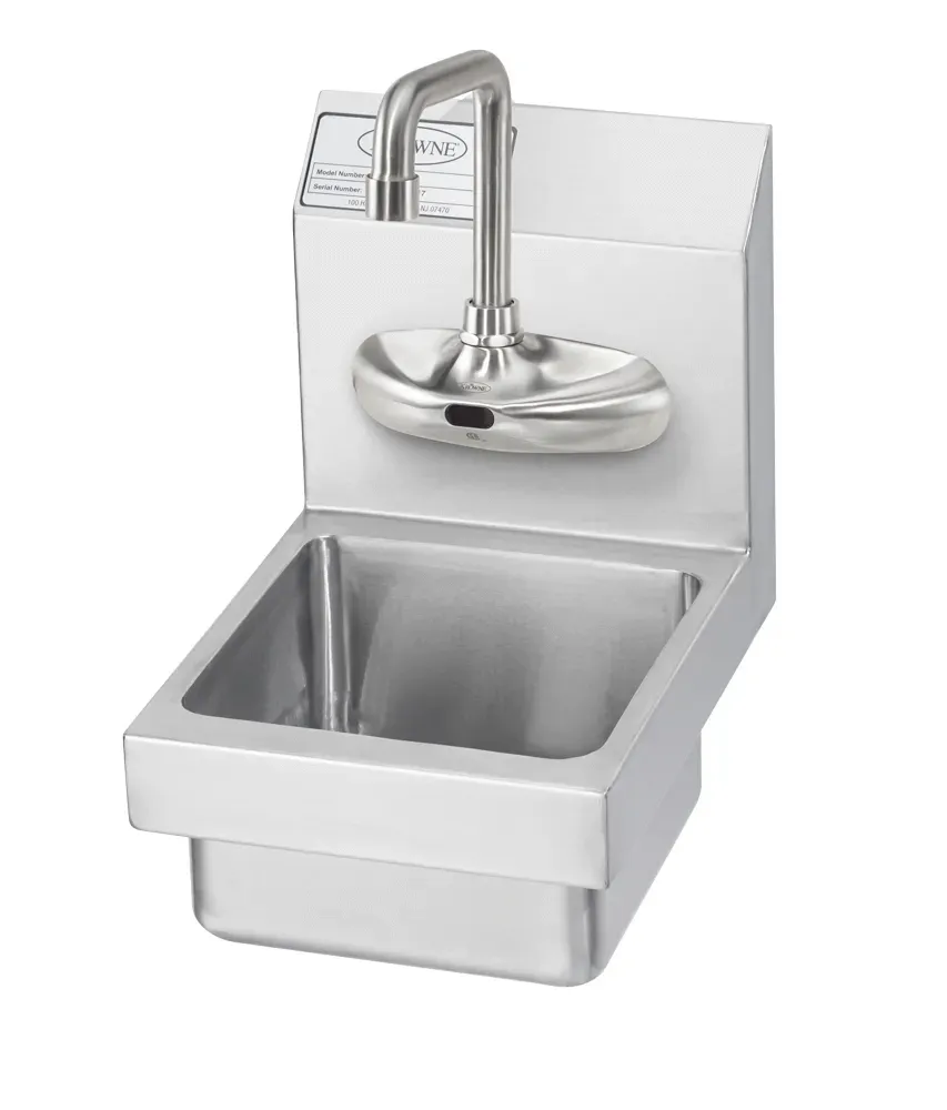 Culinary artistry redefined with Krowne Metal, HS-61 Hand Sinks. This 9" wide wall mount hand sink is a must-have for any commercial restaurant. Designed with a satin 4" OC electronic faucet and a 4-1/2" double bend spout, this hand sink offers convenience and functionality. The electronic faucet ensures easy operation and helps maintain hygiene standards in a busy kitchen environment. The double bend spout allows for easy access and efficient water flow, making handwashing a breeze. With its compact size and wall mount design, this hand sink is perfect for restaurants with limited space. Upgrade your restaurant's handwashing station with the Krowne Metal, HS-61 Hand Sink and experience the difference in cleanliness and efficiency.