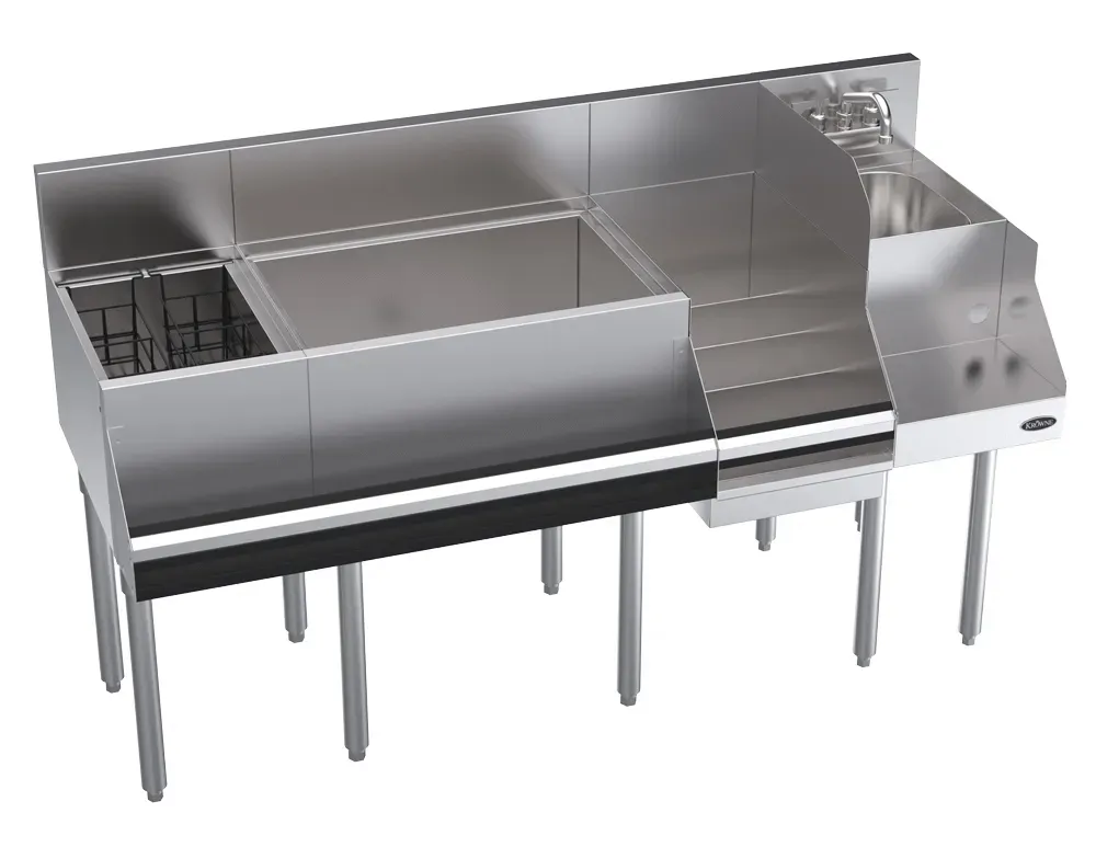 Master the art of cooking with the Krowne Metal KR24-W60E-10 Workstation. This Royal Series 60" Insulated Bottle Storage/Ice Bin/Blender/Liquor Display Workstation is designed to enhance efficiency and organization in your commercial restaurant. With its 10 Circuit Cold Plate and Insulated Bin, you can keep your beverages chilled and ready to serve at all times. The liquor display adds a touch of elegance to your bar area, allowing you to showcase your finest spirits. The 60"W x 24"D underbar workstation provides ample space for preparing drinks and cocktails, while the blender station ensures smooth and consistent blending results. Made by Krowne Metal, a trusted name in the industry, this workstation is built to last and withstand the demands of a busy restaurant environment. Upgrade your bar setup with the Krowne Metal KR24-W60E-10 Workstation and elevate your customers' dining experience.