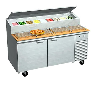 Elevate service with innovation using La Rosa Refrigeration's 2067-PTB Refrigerated Counter, Pizza Prep Table. This two-section table is designed specifically for commercial restaurant use, offering convenience and efficiency. The refrigerated pan rail can accommodate up to eight 1/3 pans, allowing for easy access to ingredients while preparing pizzas. With a cold-wall rail construction and rail drain, this prep table ensures optimal temperature control and easy cleaning. The 16 gauge stainless steel top, front, and ends provide durability and a sleek appearance. The stainless steel and plastic interior further enhance hygiene and cleanliness. Equipped with side-mounted refrigeration, this table maximizes space and efficiency in the kitchen. The expansion valve system and full finished welds guarantee reliable performance. With a 1-year parts and service included, you can trust in the quality and longevity of this prep table. Elevate your restaurant's pizza preparation with La Rosa Refrigeration's 2067-PTB.