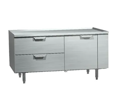 Transform tasks into extraordinary achievements with the La Rosa Refrigeration 3350-RF Equipment Stand, Freezer Base. This two-section reach-in unit is perfect for commercial restaurant use, offering ample storage space and convenient access to your ingredients. The stainless steel front, ends, and top with a 1-1/8" marine edge ensure durability and easy cleaning, while the fully finished welds add a sleek and professional look to your kitchen. The unit features a solid hinged door and two drawers, each accommodating a 12" x 20" x 4-1/2" poly pan (pans not included). With side-mounted refrigeration and a 1/4 hp compressor, this self-contained freezer base provides efficient cooling and temperature control. The 6" high stainless steel legs with adjustable feet allow for easy leveling on any surface. Made in Detroit, this La Rosa Refrigeration unit is a reliable and high-quality addition to any commercial kitchen.